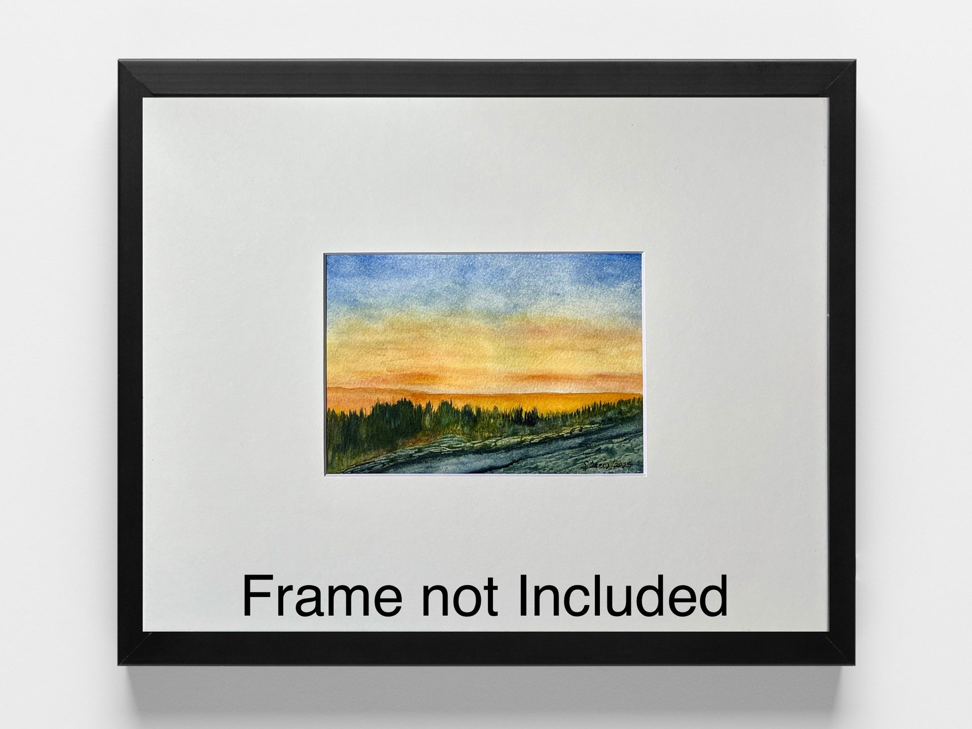 Immerse yourself in the serene beauty of this original watercolor composition, where luminous golden tones and refined technique converge to evoke the tranquil atmosphere of sunset. Measuring 5x7 inches and professionally matted to 11x14 dimensions, this piece arrives presentation-ready and awaits your chosen frame. The masterful layering of pigment creates depth and movement across the composition, making it an compelling focal point for discerning collectors. Frame displayed in reference photo is not included.